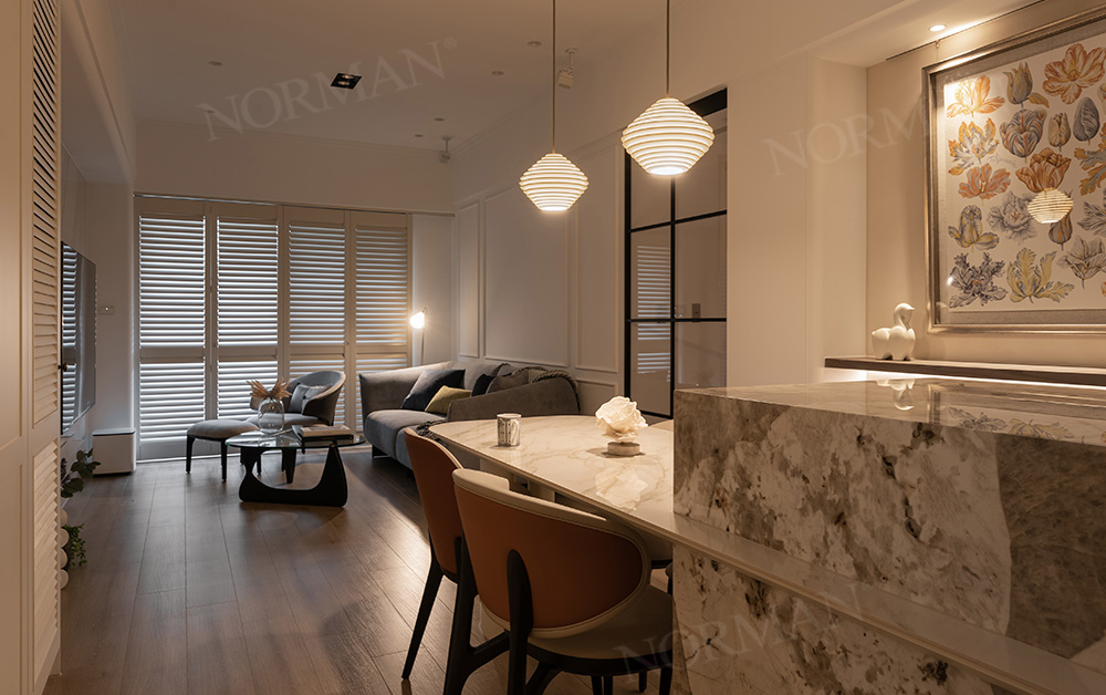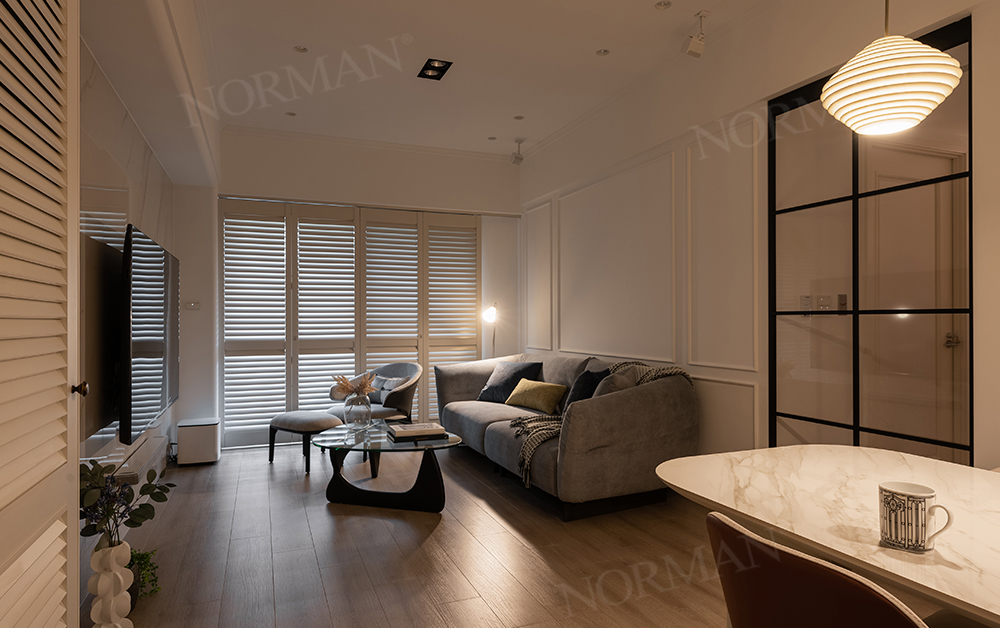 百葉窗讓每一道光,都成為生活的亮點 2025 年 10 月 30 日 木質框型百葉窗 軌道式折門型 007 象牙白 NORMAN BLOG用戶案例客廳百葉窗讓每一道光,都成為生活的亮點 家的整體氛圍,常常取決於光線怎麼進入。恰如其分的光線能讓空間變得更加溫馨,傢俱材質也會在光影間展現不同的面貌,而掌握這些細微變化的,正是靜靜佇立在窗邊的百葉窗Shutters。 當輕輕轉動百葉窗的葉片,光影即會在木紋地板和石材表面間展露姿態,讓材質的紋理更加立體而有層次。這種互動不會喧賓奪主,反而在無形中提升了空間質感。 需要專注時,可以大幅度展開採光、讓視野保持通透清晰;想要放鬆時,也能將光線調整得柔和些。無需極端切換,便能保留適度餘裕,讓您在明與暗之間取得剛好的平衡,也讓家始終保持著舒適與美感。 設計公司:有隅空間室內裝修設計有限公司粉專/官網:https://www.havenspacedesign.com/ 使用窗飾:木質框型百葉窗 軌道式折門型 007 象牙白 木質框型百葉窗 對開+單開型 003 絲綢白木質框型百葉窗 對開+單開型 063 雪地白 SHARE ON: NORMAN®目前全台共有六家展示中心,陳列全系列兼具美觀及功能性的全方位窗飾,邀你在舒適的展示空間中,細細品味咖啡香,融入各式窗簾詮釋的不同空間美學。 前往NORMAN®官網預約參觀門市聯絡我們 Digital Marketing 2025 年 10 月 30 日